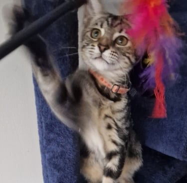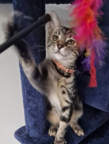 A separate service I provide is cat sitting. Your feline friend will stay in your home whilst you are on holiday or if you are away on business and you can choose the option of a once or twice a day visit. During my visit your cat(s) will be fed, their litter box cleaned and I will engage in play and give lots of strokes and nose kisses - if permitted by "your owner" of course!